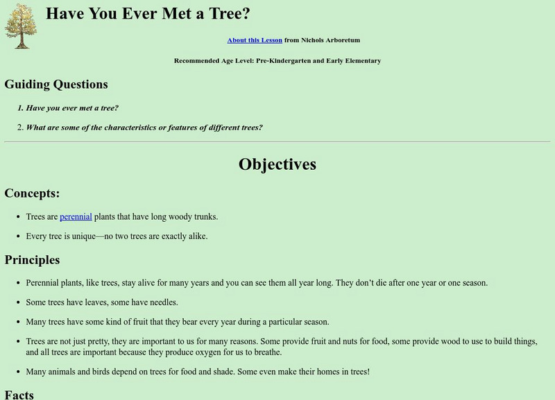This lesson plan has students identify trees, perform bark rubbings and sketches, collect leaves, and then introduce a tree to their classmates.