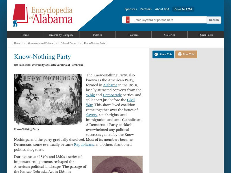 Encyclopedia of Alabama: Know Nothing Party