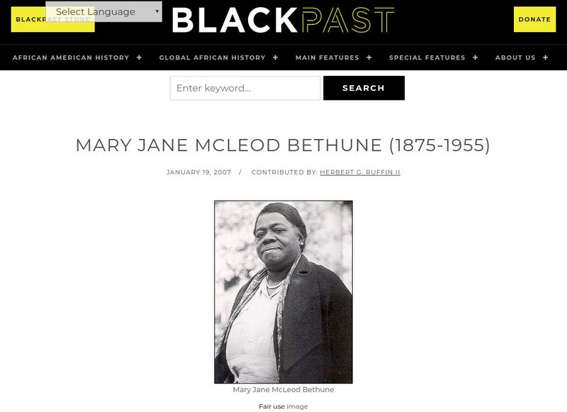 This informative encyclopedia article recounts the life of Mary McLeod Bethune, black educator and activist. There are several links to websites for further information.