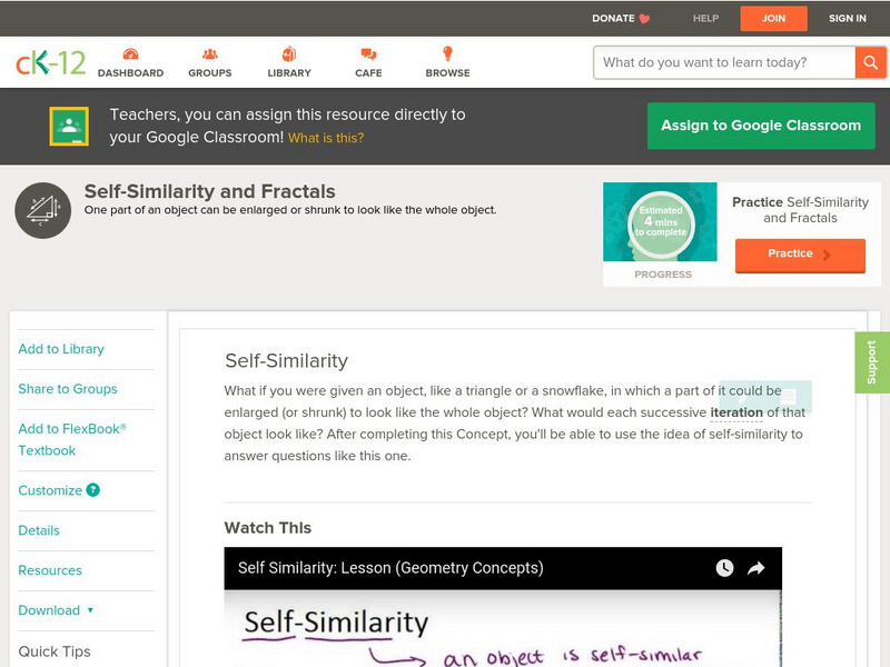 [Free Registration/Login may be required to access all resource tools.] This concept introduces students to self-similarity and presents several common examples of self-similarity.