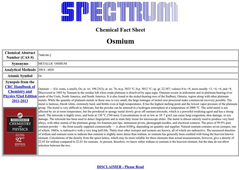 Florida Spectrum: Chemical Fact Sheet: Osmium