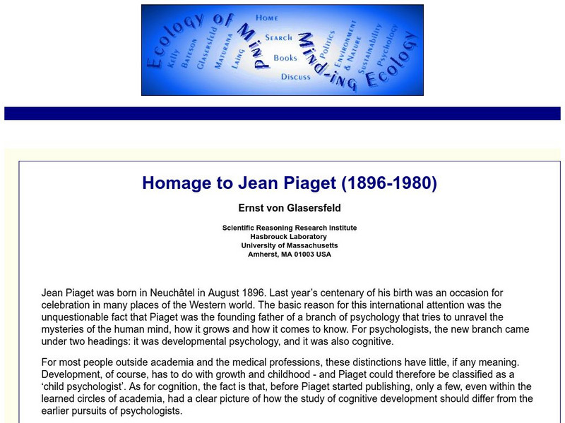 This is an excellent resource on the life and work of the Swiss educational psychologist Jean Piaget (1896-1980).