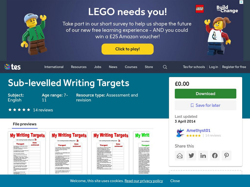 [Free Registration/Login Required] Downloadable writing targets for grades two through five. Each writing target begins with "I can."
