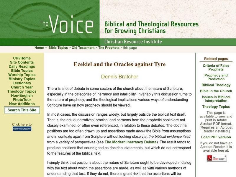 This site covers Ezekiel's Prophecy about the destruction of Tyre.