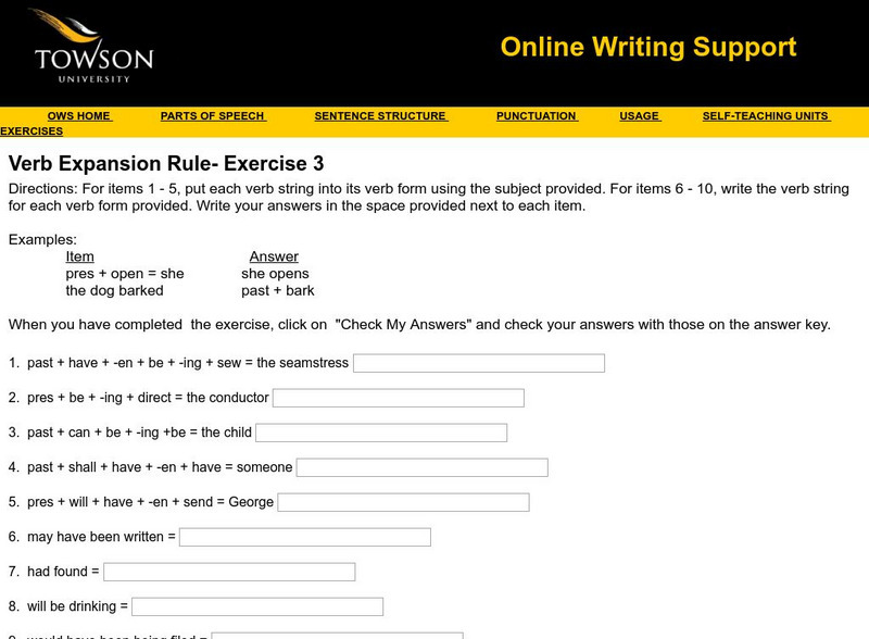 Towson University: Online Writing Support: Verb Expansion Rule Exercise 1