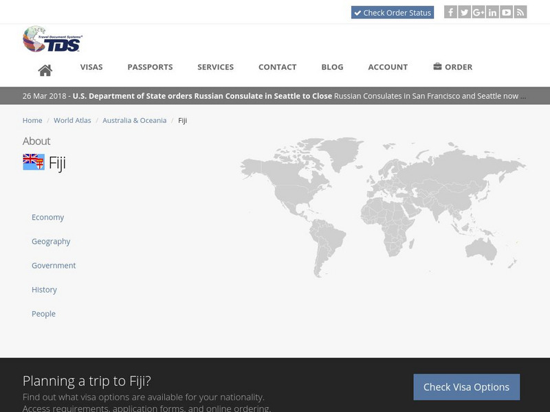 Current information on the economy of Fiji including its exports, manufacturing, increase in tourism, and problem spots. Information is from the U.S. State Dept. Background Notes.