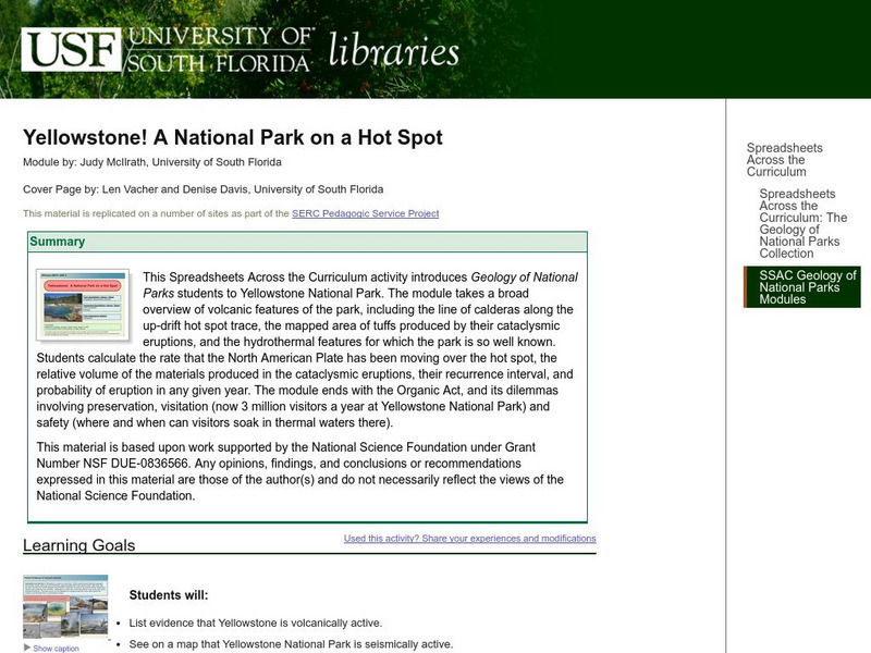 A lesson plan with an accompanying PowerPoint learning module for students where they learn about the volcanic features of Yellowstone National Park. They use spreadsheets to make various calculations, such as the volume of material...