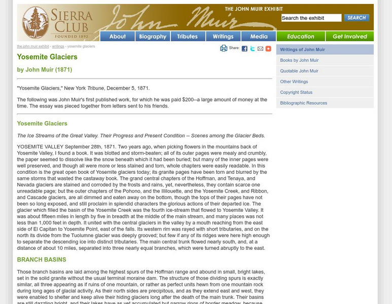 John Muir was in the Yosemite Valley in 1871. These notes describe his journey, explaining much about Yosemite glaciers and the progress they've made over time.