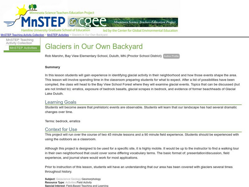 Students identify glacial activity and infer how those events shape the area. This lesson involves a filed trip to a location where it is possible to examine glacial events.