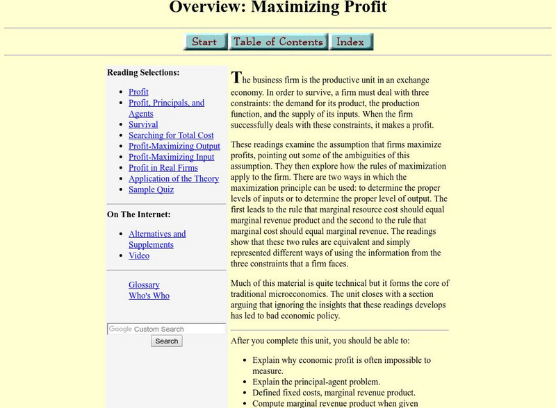 This site from the St. Joseph's College details what profit is, as well as providing a complete overview of how to maximize profit.