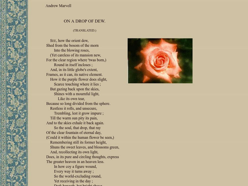 This site contains the translated version of Andrew Marvell's, On A Drop Of Dew.