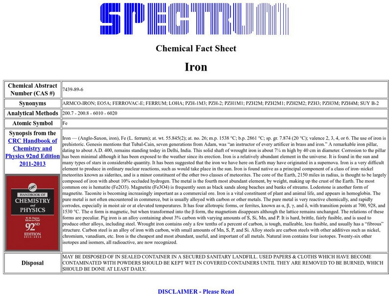 Florida Spectrum: Chemical Fact Sheet: Iron