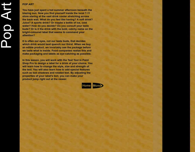 Use Paint Shop Pro to "Design a label for a drink of your choice." Learners will have the opportunity to explore the text tools that Paint Shop Pro offers to change the style, size, effects, and strength of the text.