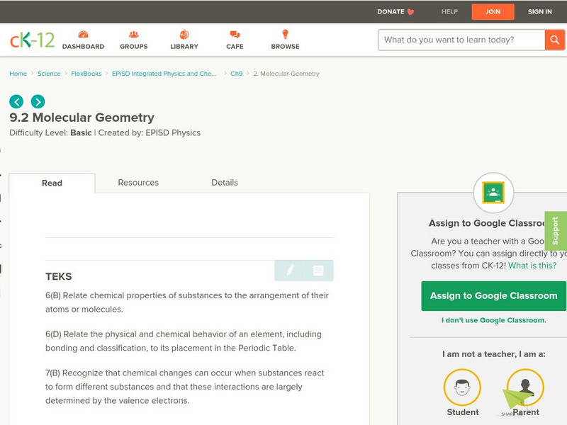 [Free Registration/Login may be required to access all resource tools.] In this interactive learning module, students will learn a technique to predict molecular geometry based on a molecule's Lewis electron dot structure.
