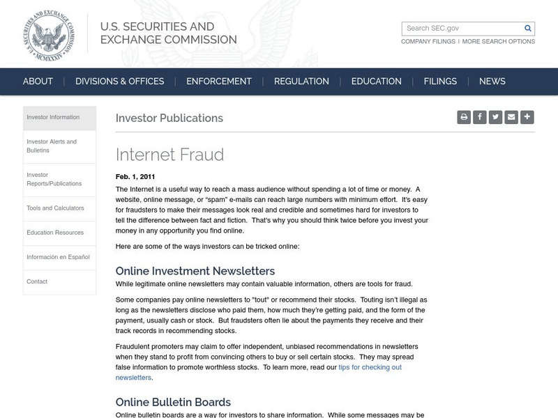 U.s. Securities and Exchange Commission: Internet Fraud