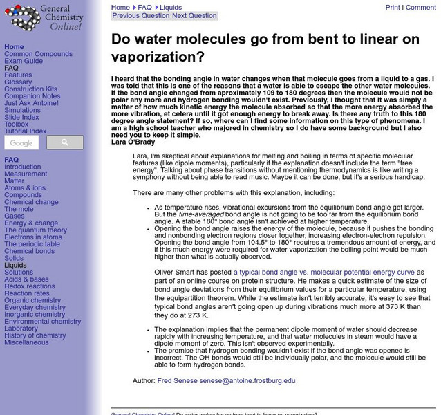 Frostburg State Chemistry Online: Water Bond Angles & Phase Changes
