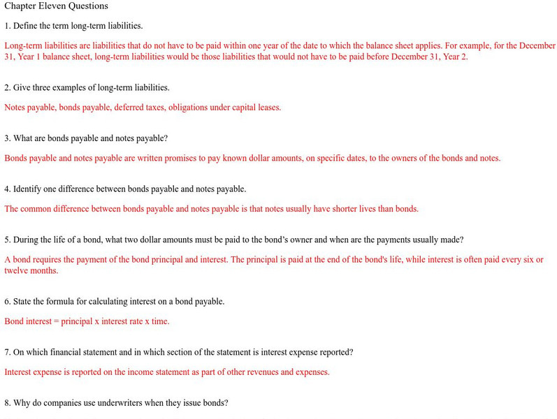 Issuing bonds is one way a corporation raises capital. This site from the University of Massachusetts Lowell provides a quiz and several problems, complete with solutions, that illustrate the accounting procedures for bonds payable.
