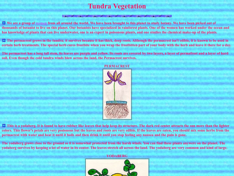 At this site from the Missouri Botanical Garden you will find information on the tundra. What is the tundra? Where is it located? What is the climate of the tundra? What animals live in the tundra? What plants live in the tundra? Click...