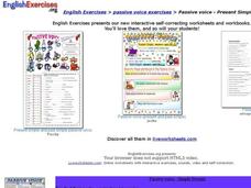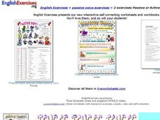 For this online interactive English skills worksheet, students respond to 10 multiple choice questions that requires them to change sentences in active voice to sentences in passive voice. Answers are scored immediately.