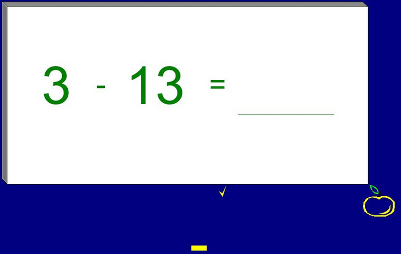 Students solve positive and negative number subtraction problems on these interactive flashcards. The problem changes color when the correct number is typed.