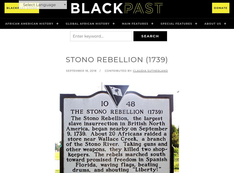 This encyclopedia article gives information about the Stono Rebellion by South Carolina slaves, and the outcome of the revolt.
