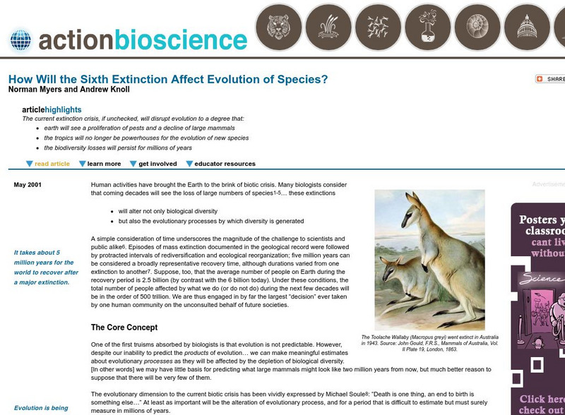 Action Bioscience: How Will the Sixth Extinction Affect Evolution of Species?