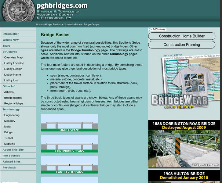 Site defines four main factors (span, material, placement of the travel surface in relation to structure, and form) that should be considered when designing a bridge.