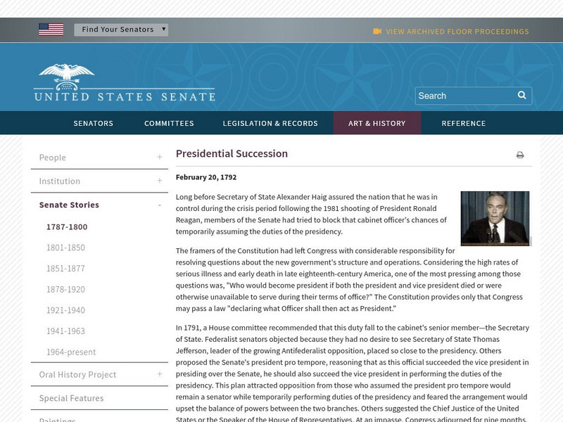 Article which discusses the controversies of the establishment of the Presidential Succession Act of 1792. Contains links to related historical information.