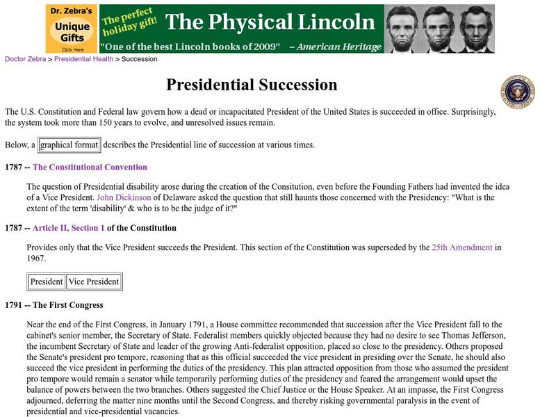 This site is put together by a medical doctor with an interest in the line of succession to the presidency. Although not a constitutional expert, the author has documented source material and has read extensively in the field.