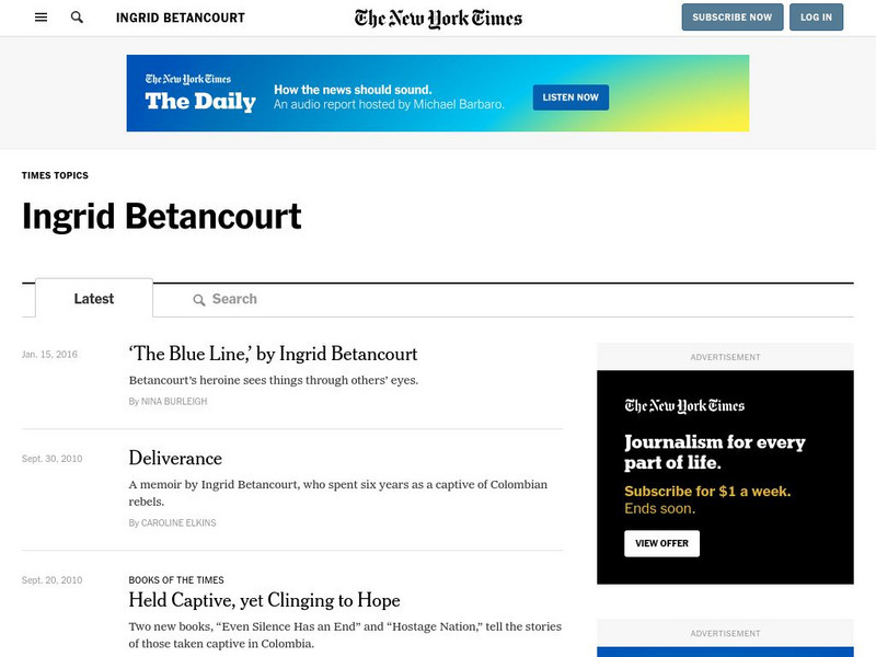 [Free Registration/Login Required] This site provides a concise overview of Ingrid Betancourt's life and political career as well as links to articles concerning Betancourt that date back to 2001. Links to related videos, photographs,...
