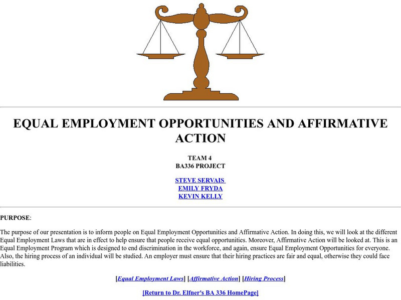 This St. Norbert College offers a research presentation that provides brief overviews of the equal employment laws, executive order 11246, and hiring processes.