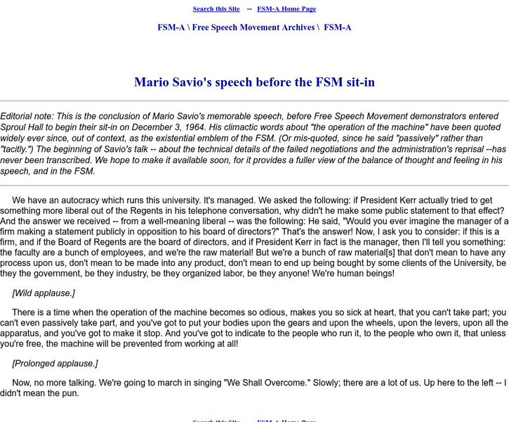 American Rhetoric: Mario Savio: Sit in Address on the Steps of Sproul Hall