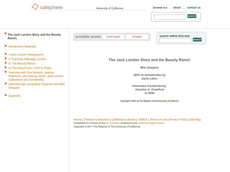 This unique site offers biographical information about Jack London and interviews the grandson of London's step-sister, who now manages the ranch.