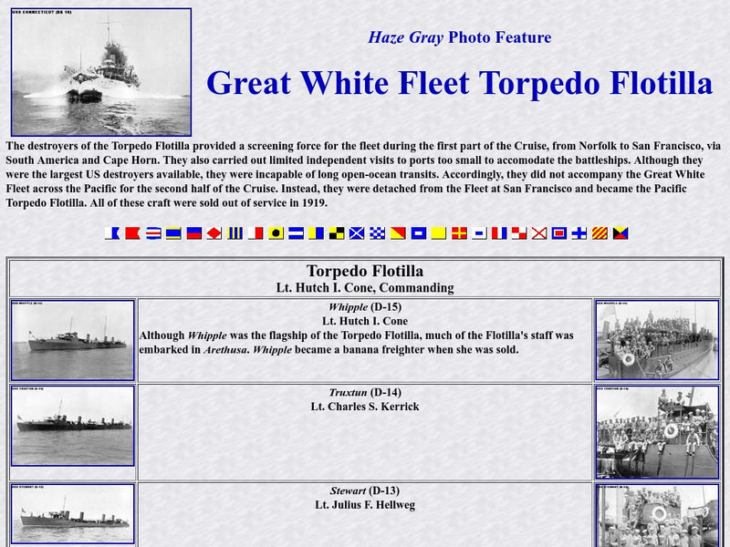 Description and photos of the destroyers (torpedo boats) of the Great White Fleet.