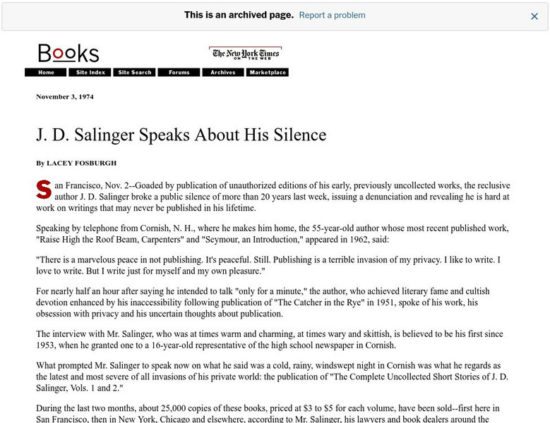 This site from the New York Times contains an article written about an interview with J.D. Salinger on his silence.