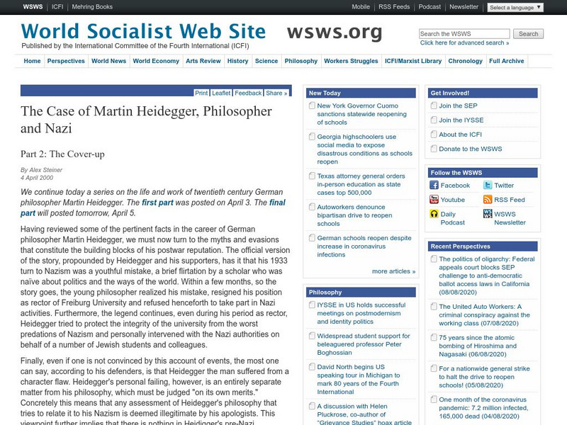 Second of three. An excellent and thorough treatment of Heidegger's involvement with German National Socialism.