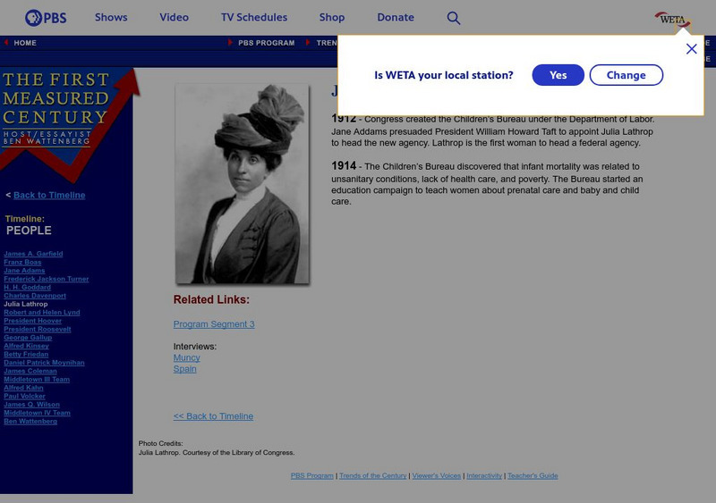 See a photo of Lathrop and read about her achievements with the Children's Bureau in 1912 & 1914.
