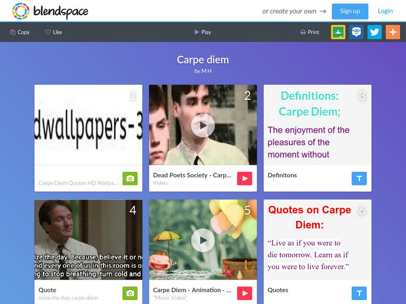 A sixteen-part learning module with links to images, videos, and texts to use while learning the concept of Carpe Diem.