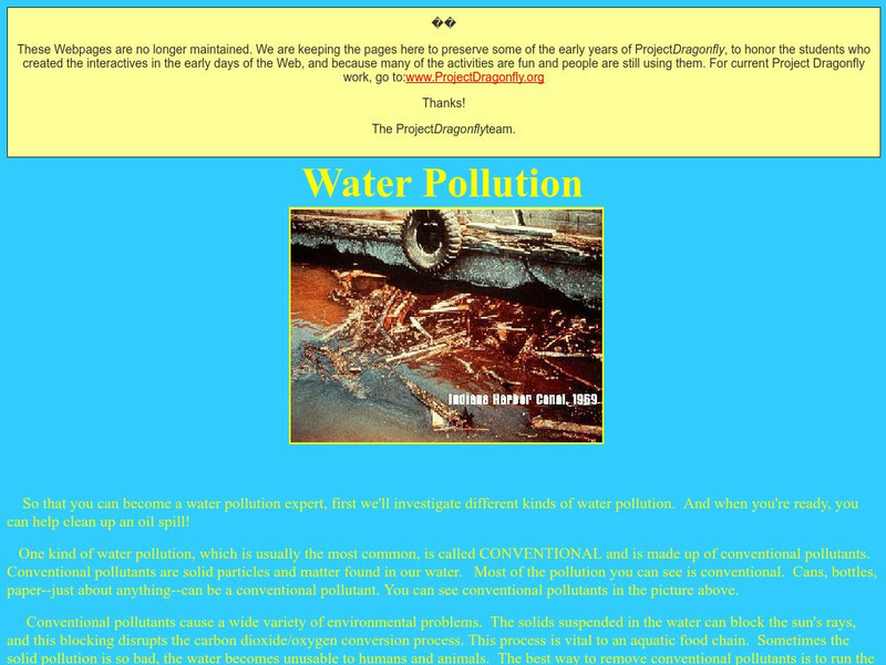 Read about the different types of water pollution and the harm it can cause. Learn about oil spills how they are cleaned up, and how you can help prevent water pollution. Additional links point to other topics relevant to the study of...