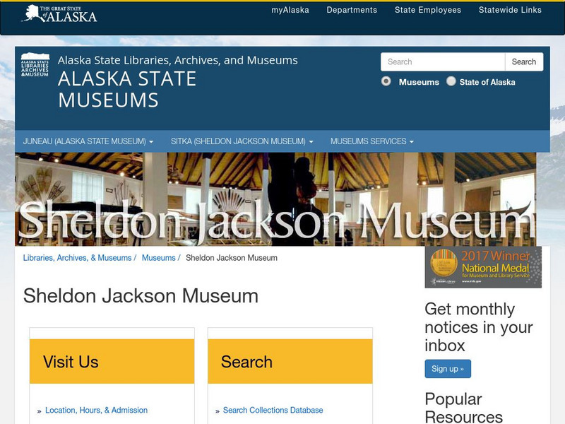 The Sheldon Jackson Museum "s the oldest museum in Alaska and is located in the first concrete building in the state. Its primary interest to educators and students online is focus on an artifact of the Month and the archive of those...
