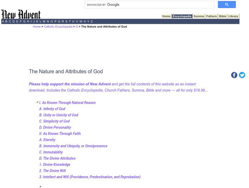 This site takes an in depth look at God through the Catholic Church. It explains God in various ways. Please note that ?The Catholic Encyclopedia? is a historic reference source and should be viewed in the context of resource material...
