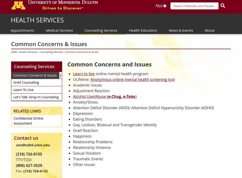 University of Minnesota Duluth: Symptoms of Stress and Anxiety