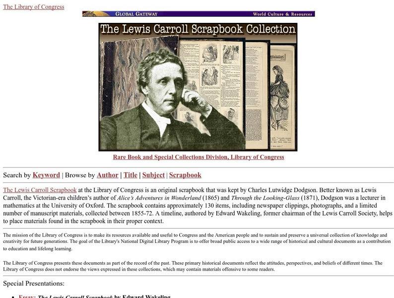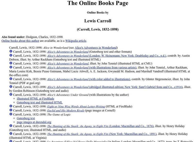 The Digital Library provides links to the complete texts of 12 works by Lewis Carroll.