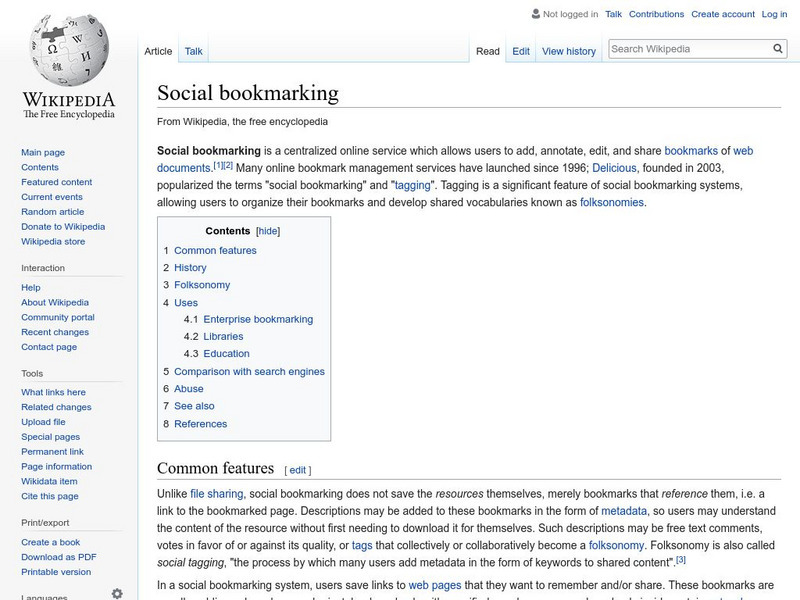 This article introduces the reader to the concept of social bookmarking which organizes sites generally by the use of tags. Social bookmarking sites are an increasingly popular way to locate, classify, rank, and share Internet resources...