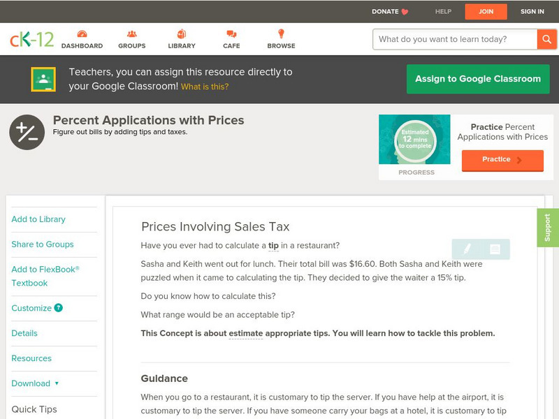 Ck 12: Arithmetic: Prices Involving Sales Tax