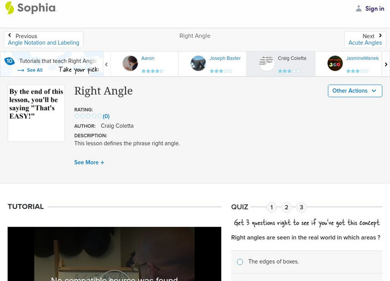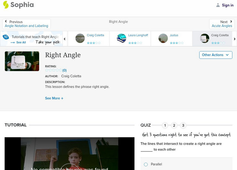 Khan Academy: Geometry: Acute, Obtuse, and Right Angles