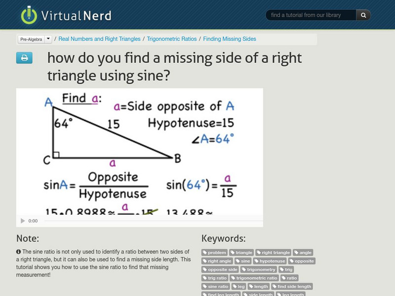 Virtual Nerd: How Do You Find a Missing Side of a Right Triangle Using Sine?