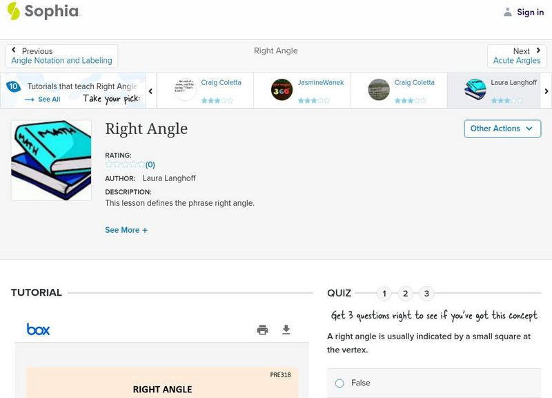 This lesson defines the phrase right angle. It is 1 of 14 in the series titled "Right Angle."