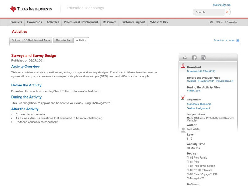 [Free Registration/Login may be required to access all resource tools.] Design and conduct surveys and analyze and interpret the results.