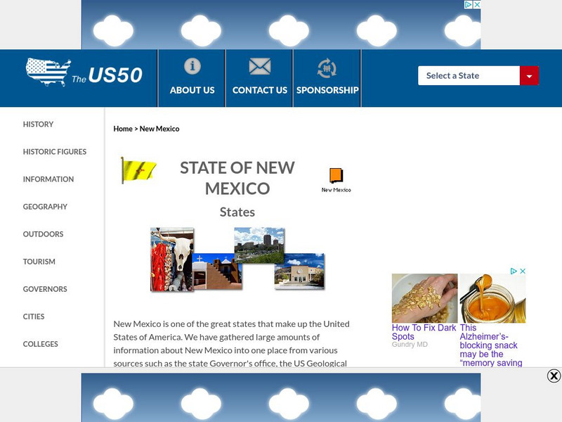 Offers comprehensive information regarding New Mexico history, famous people, cities, geography, state parks, tourism, and historic sites. A fact sheet of information and a quiz are also available.